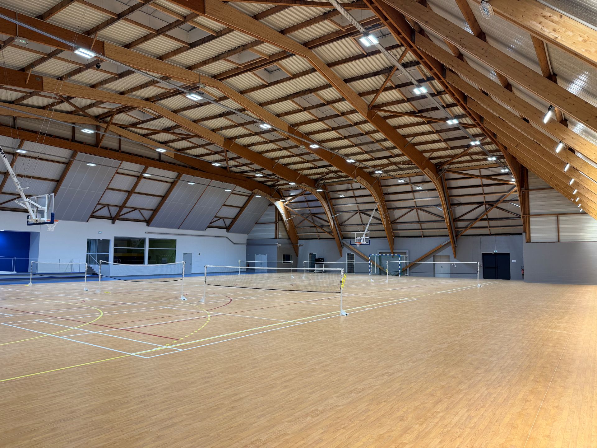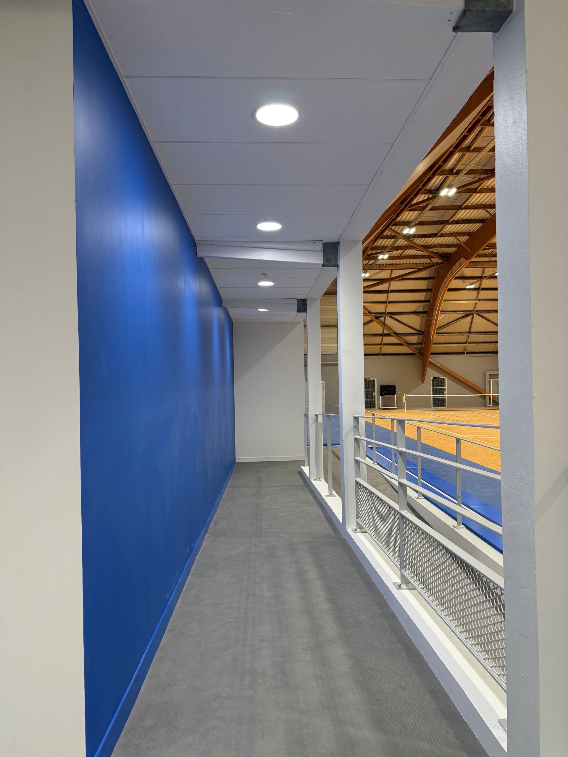 Les projets du Complexe Sportif d’Éventard et du Tribunal de Baugé représentent des chantiers parmi les plus ambitieux de notre année 2025. Notre mission englobait la réfection totale des installations électriques de ces bâtiments existants. Concrètement, nous avons procédé au renouvellement complet de l’éclairage et des prises de courant, garantissant ainsi une mise aux normes rigoureuse.